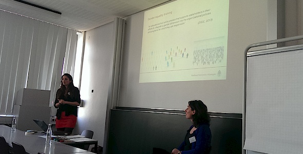 The workshop took place at the 19th of March 2015 at University of Vechta (Germany) in the frame of the annual conference of the association of "Women’s and Gender Equality Officers at Universities in Lower Saxony" (LNHF). Gender equality training has become one of the most applied strategies to support gender mainstreaming and support gender equality in organizations. Gender equality training offers a potential for effective social changes through involving stakeholders, enabling them to incorporate a gender perspective into organizational policies. This workshop discusses how training activities vary widely with regard to their objectives, audiences, content, methodologies, trainers, levels of stakeholder involvement and impact. The workshop leaders, dr. Inge Bleijenbergh and dr. Pleun van Arensbergen from Radboud University Nijmegen, the Netherlands, have experience with Gender Equality Training in various EU funded gender equality research projects. They argue that training method directed at a targeted audience and high levels of stakeholder involvement have potentially the largest impact. As the quality of gender training sets the boundaries of its potential, they support the development and promotion of quality standards with regard to training methodologies and content. Via participatory methods the workshop participants are invited to discuss standards for gender equality training programs and trainers.